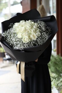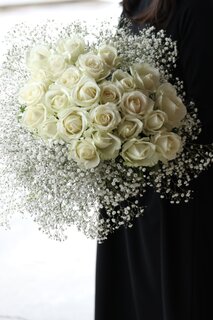 白薔薇とカスミソウの花束の注文が来ました